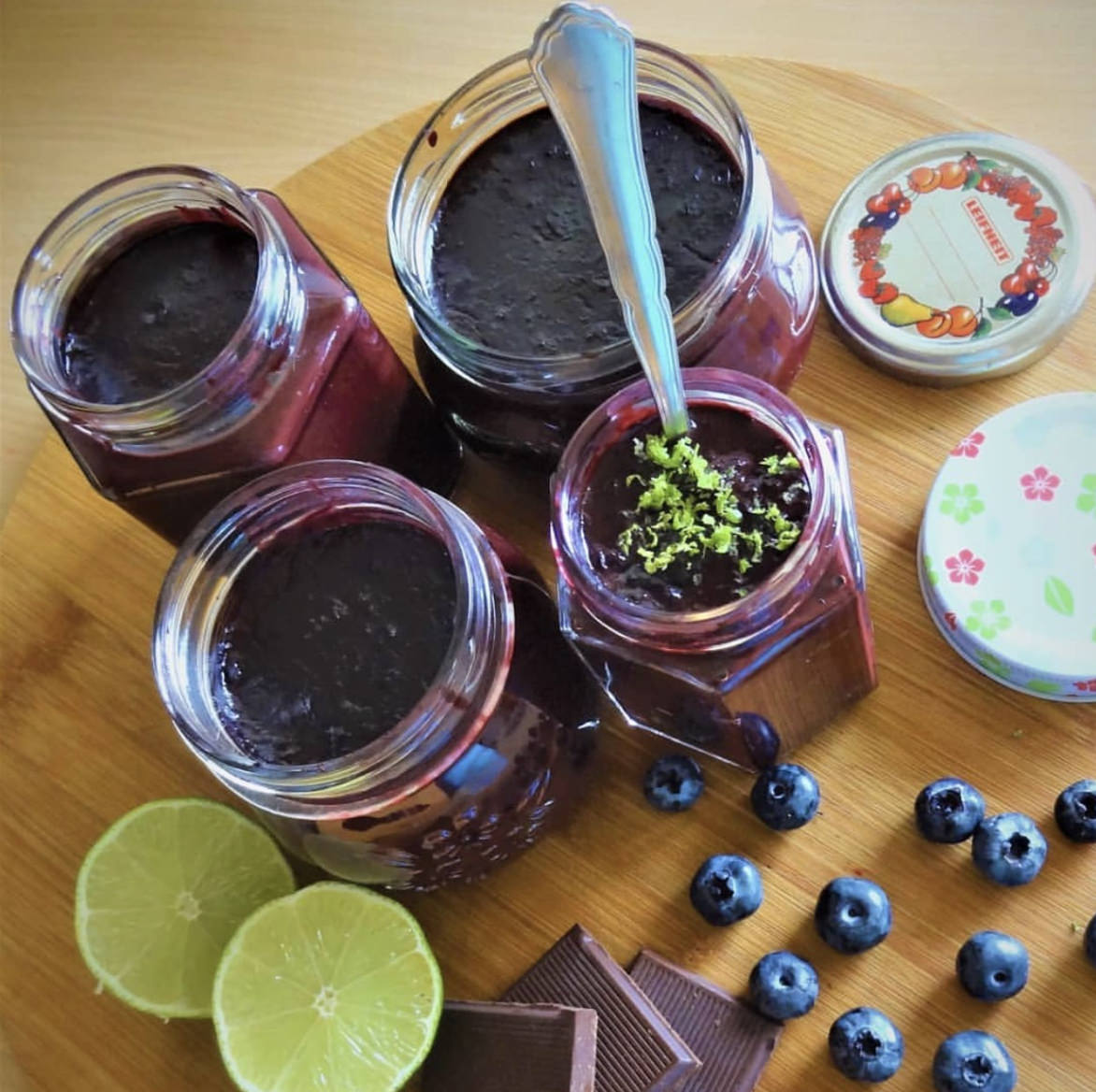 - Kada ste završili s kuhanjem džema sklonite lonac sa štednjaka i borovnicama dodajte sitno sjeckanu tamnu čokoladu i naribanu koru limete. Pomiješajte sve sastojke i prelijte džem od borovnica ravnomjerno u nekoliko steriliziranih staklenih teglica za zimnicu. Odmah poklopcima zaklopite teglice s džemom. Prije nego pospremite teglice džema u smočnicu ili u hladnjak ostavite ih da se ohlade na sobnu temperaturu.U slast!